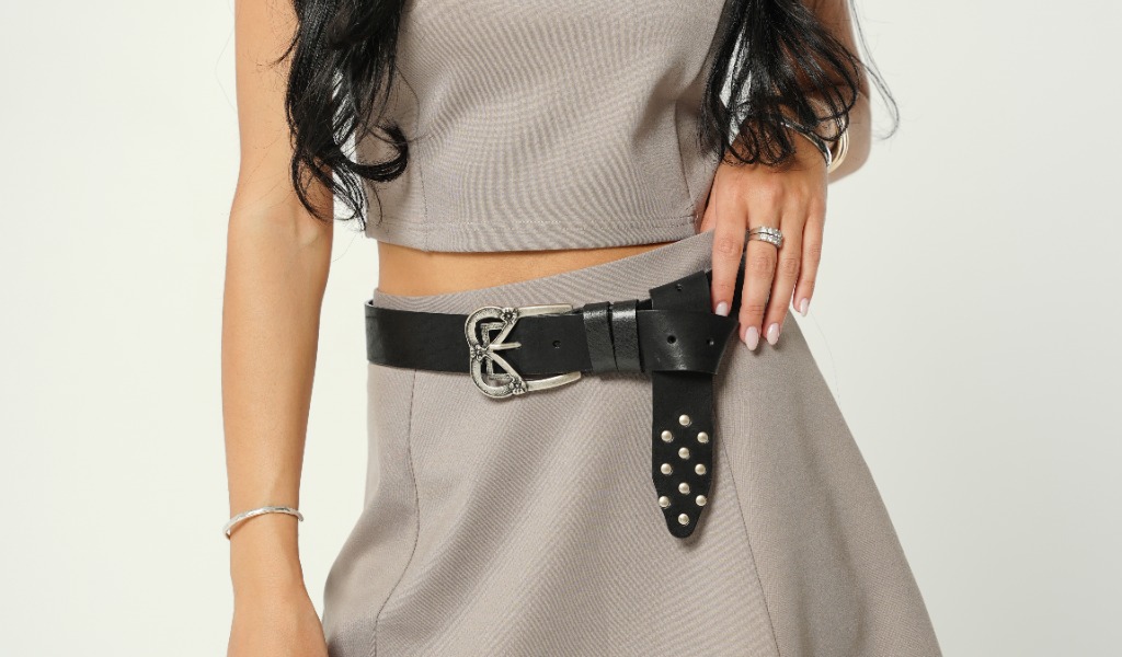 H δερμάτινη ζώνη αυτή σε μαύρο χρώμα με τρουκς στο φινιρισμα της ζώνης γίνεται statement αξεσουάρ που δένει άψογα με high-waist παντελόνια, φορέματα ή oversized πουκάμισα. Ένα κομμάτι που απογειώνει κάθε look με τον μοναδικό του χαρακτήρα