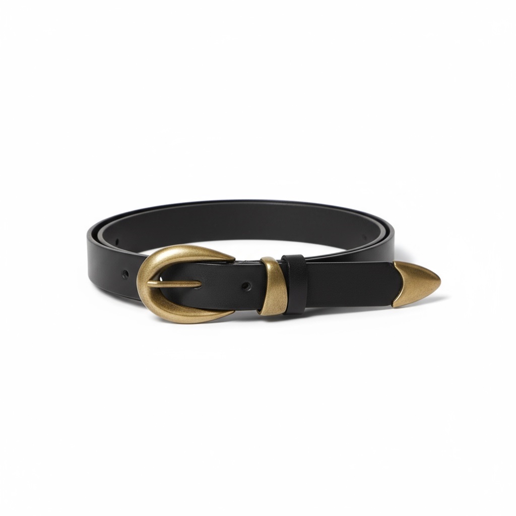 H δερμάτινη ζώνη αυτή σε μαύρο χρώμα μεταλλικό θηλάκι και μεταλλική μύτη στο φινίρισμα σε χρυσό χρώμα γίνεται statement αξεσουάρ που δένει άψογα με high-waist παντελόνια, φορέματα ή oversized πουκάμισα. Ένα κομμάτι που απογειώνει κάθε look με τον μοναδικό του χαρακτήρα